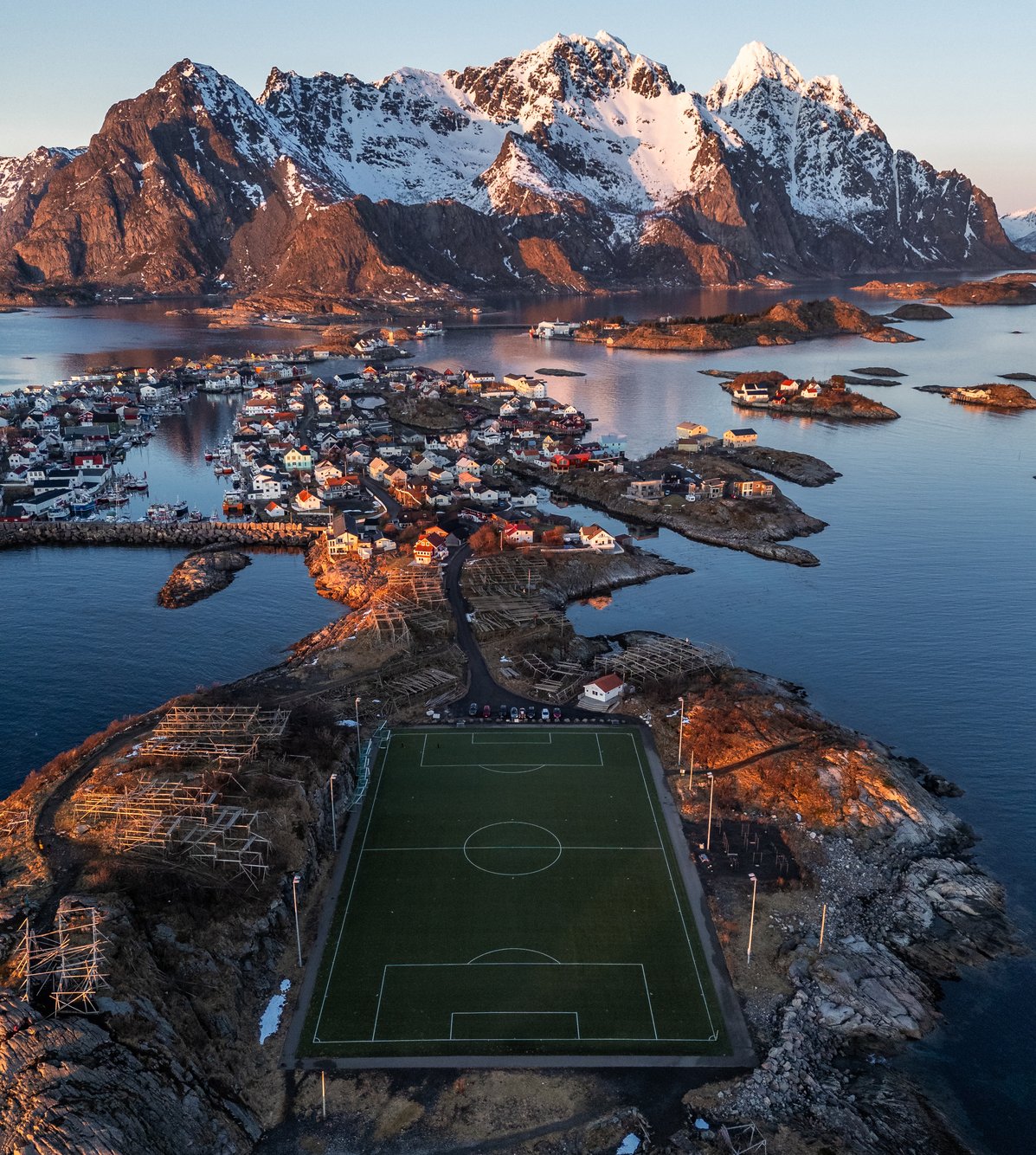 It is remarkable that the most renowned and Instagram-famous location on this island is actually a "football field", hailed as the "most beautiful football field in the world". This extraordinary field is situated on a tiny island in the middle of the deep sea, surrounded by majestic snow-capped mountains, creating a breathtaking and unparalleled panoramic view. Every corner of the field feels like a scene from a movie, with nature serving as the backdrop!